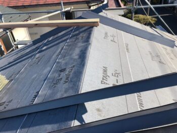 野地板の上に新しい防水シート(ルーフィング)を敷きます