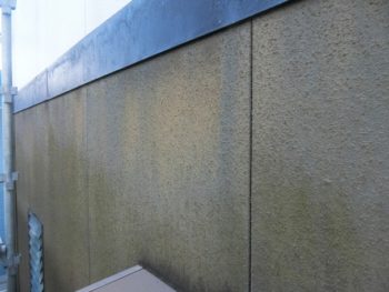 雨垂れや、苔等の汚れが見て取れます。