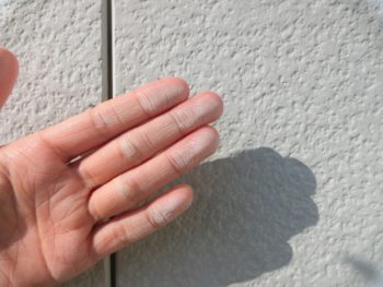 経年劣化によるチョーキング現象も見られ、塗膜の劣化が分かります。